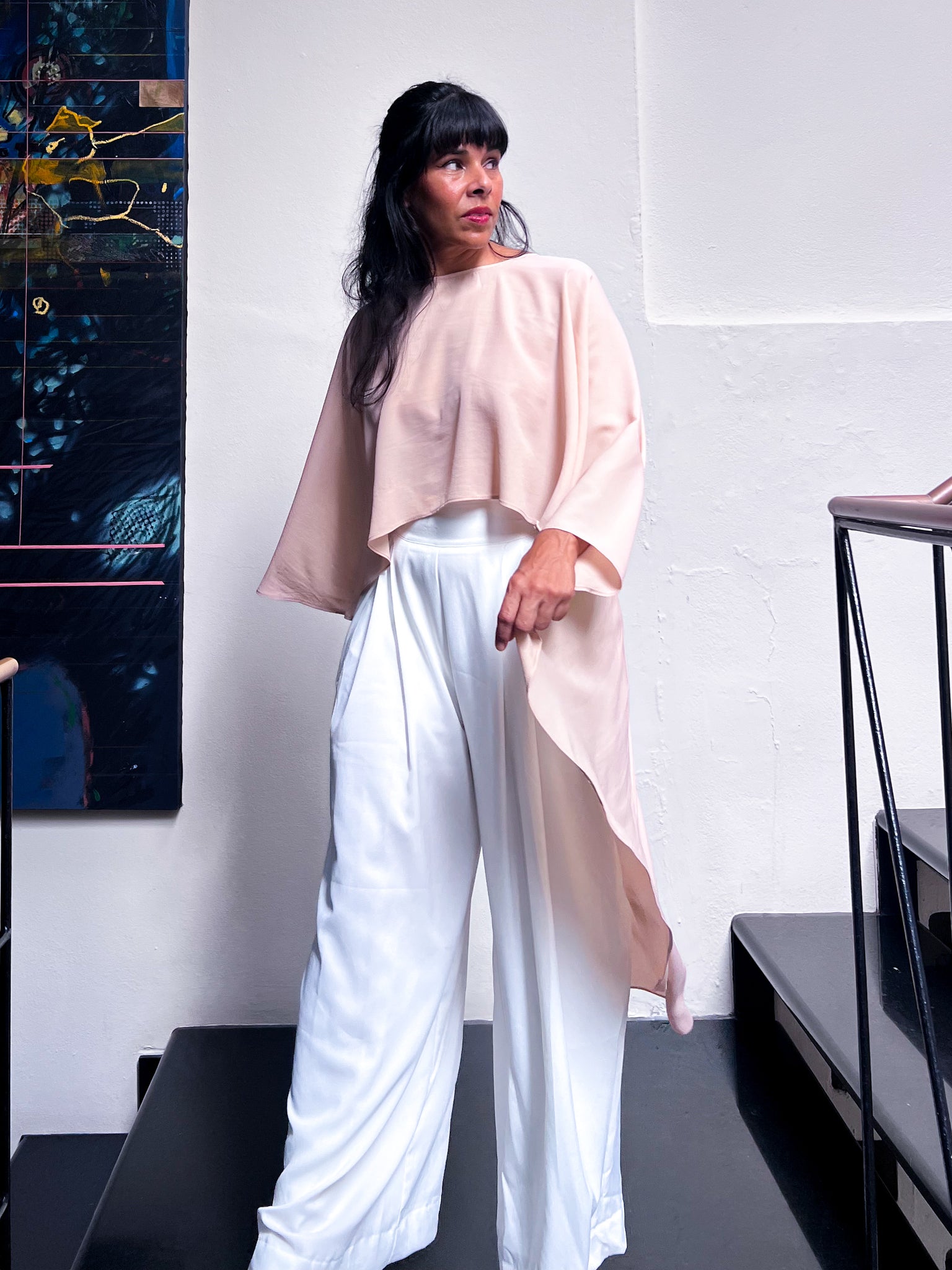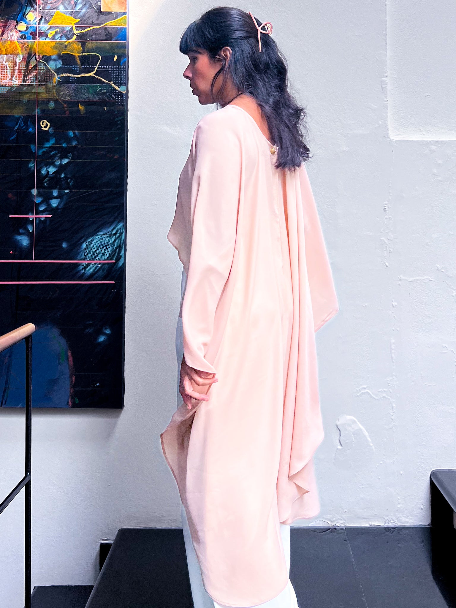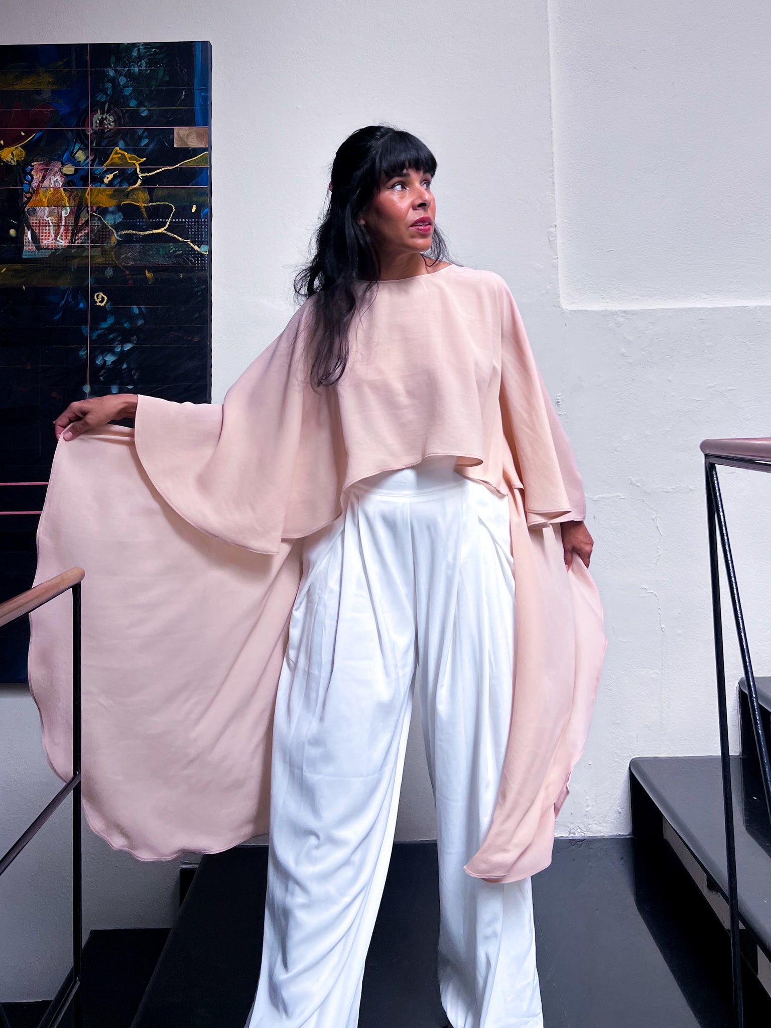 La Veil Cape está confeccionada en chiffon/georgette para elevar cualquier look con elegancia sutil y fluidez natural.